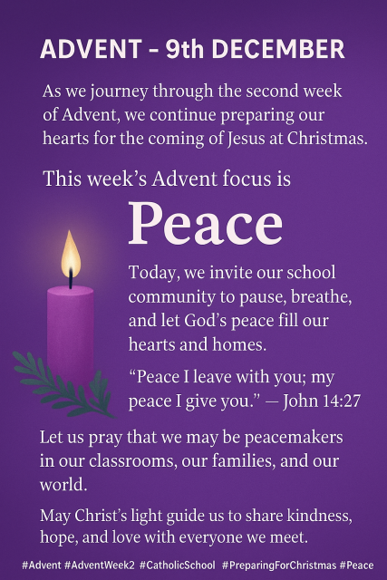 #Advent #AdventWeek2 #CatholicSchool #PreparingForChristmas #Peace #FaithInAction