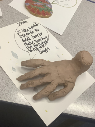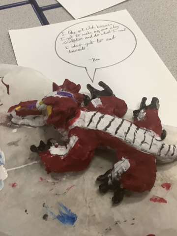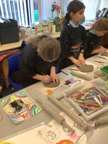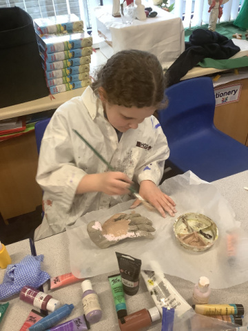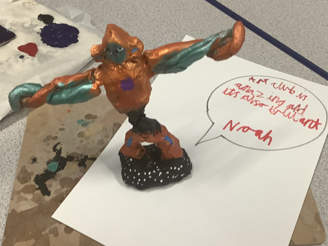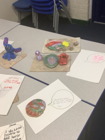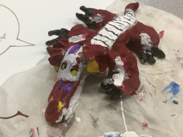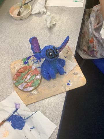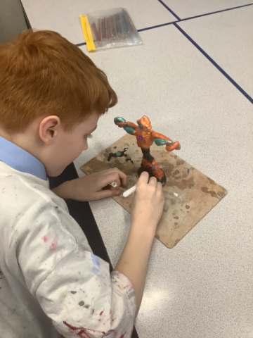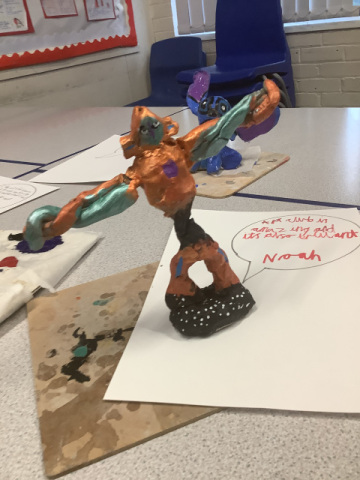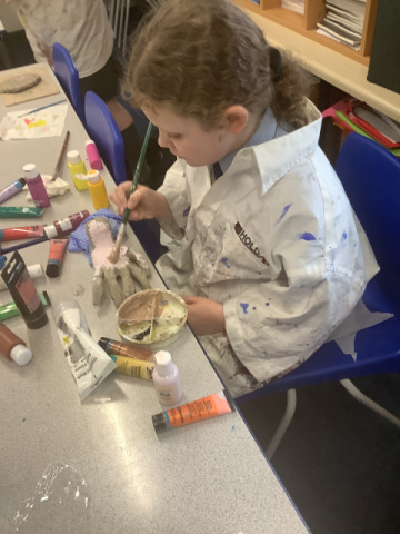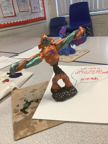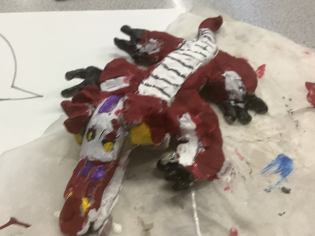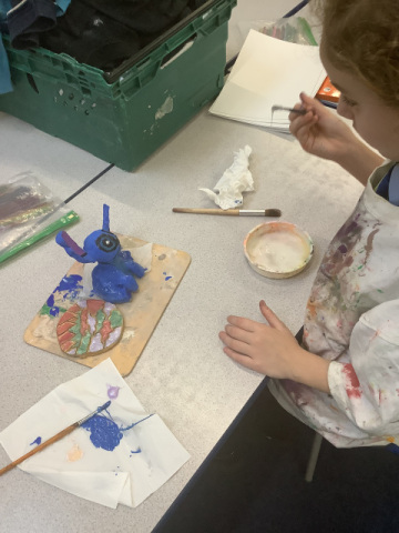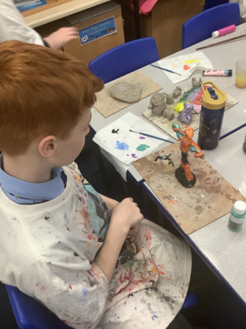 What a fantastic job Year 5 did of their clay sculptures. From the initial designs to the final painting and varnishing – they all worked to hard and really persevered with this very tricky technique. Children developed their skills in creating texture, pattern and shape with the air drying clay and also explored strengthening techniques such as using internal wire and foil to create much sturdier pieces. I loved allowing the children creative freedom to create anything of their choice in this class and they amazed me with their creativity. Well done everyone, you should be very proud of yourselves!