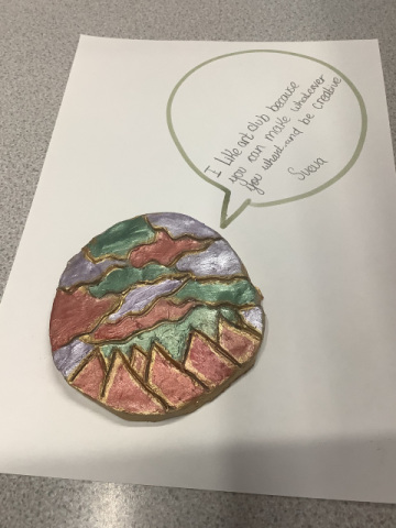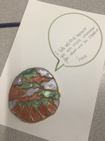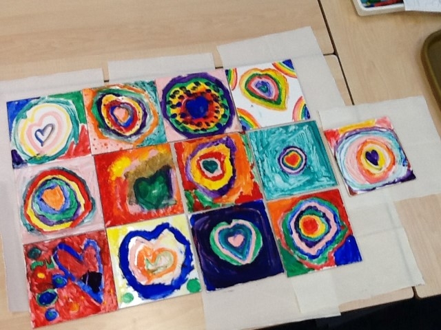 For our final week’s creations we made beautiful Kandinsky-inspired Valentines tiles. The children used acrylic paint to create their beautiful pieces, and really did impress me with their patience and creativity with colour. I have had THE BEST five weeks with you all, thank you art clubbers for all your hard work!
