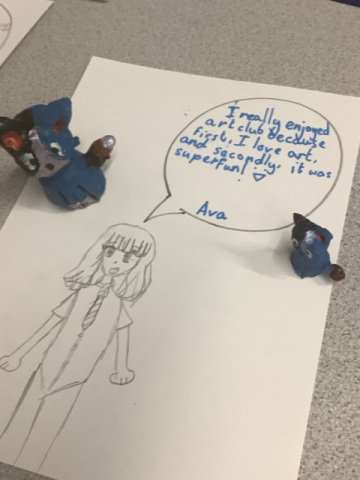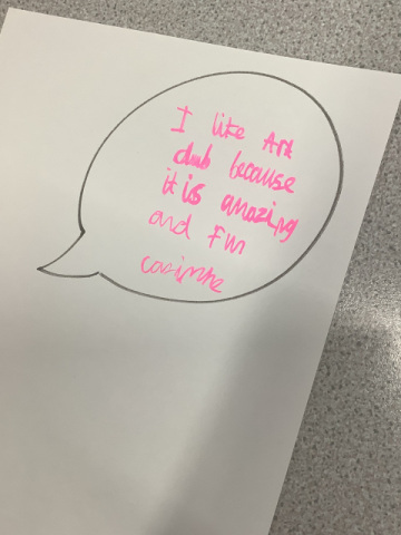 This week our super artists used a variety of media including felt tips, pencils, collage, and glitter to decorate large posters of their names. Some super work was produced – well done art club!
