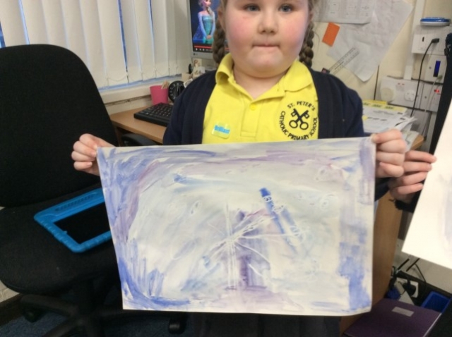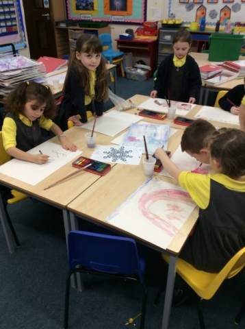 Art Club got off to a flying start this week, with children learning how to do magic wax relief paintings in a wintry theme. Children drew snowflakes and wintry shapes onto large card and then used a watercolour wash in cold colours, making their icy drawings appear as if by magic! Well done art clubbers!