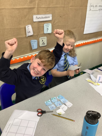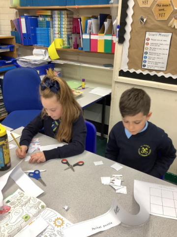 In computing we have been learning about data packages.  The children made their file and then had to cut it up into smaller pieces like a data package and then their friend had to see if they could put back together like a file.